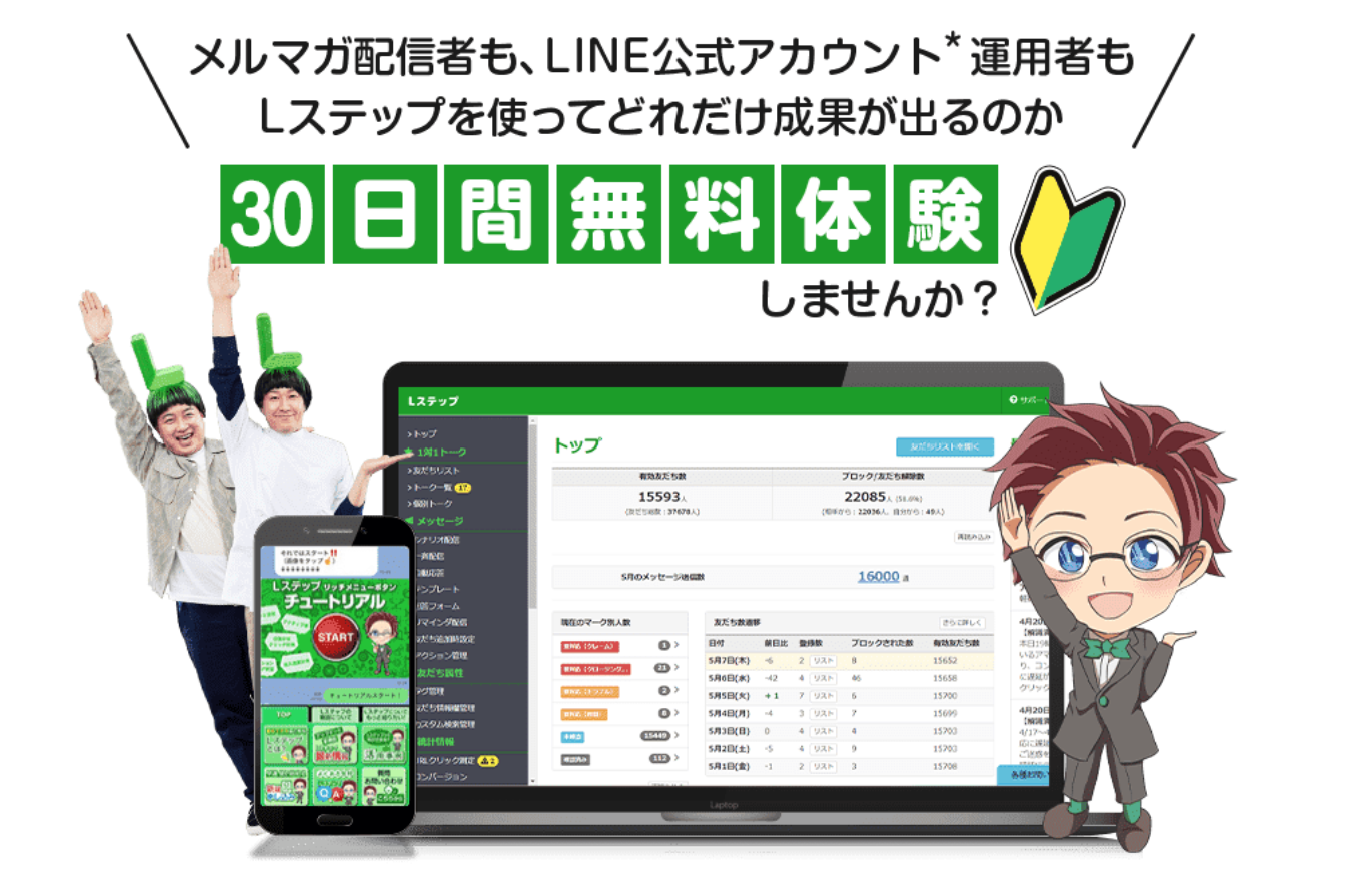 LINE公式アカウントの機能を拡張し、シナリオ配信・セグメント配信・行動スコアリング・流入経路分析を自動化するマーケティングオートメーションツール。