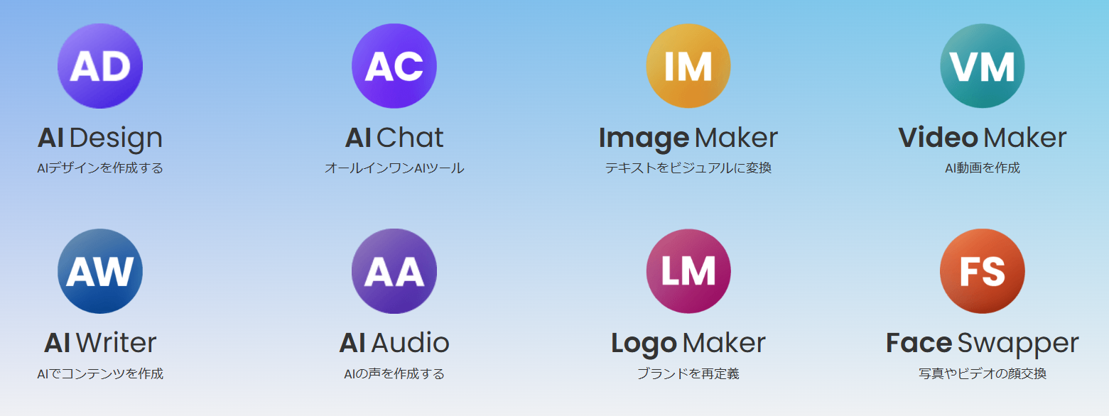 Designs.aiは、ロゴやバナー、動画などのデザイン作業をAIが支援するクラウド型プラットフォームです。直感的な操作でデザインのカスタマイズを行え、初心者でもプロ並みのクオリティを短時間で実現。フォントや配色の自動提案機能により、ブランディングの統一感を保ちながらスピーディに制作を進められます。さらに、生成されたデザインを複数の形式に自動書き出しでき、SNSやWebサイトなどさまざまなチャネルでの利用を想定した出力が可能です。