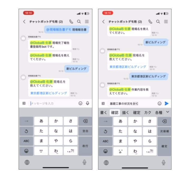 日々の業務報告をチャットボットで自動化。音声入力やタップ操作に対応し、報告作業の手間を大幅削減。