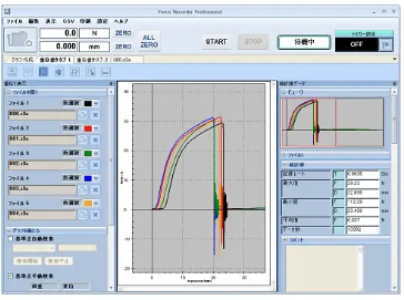 荷重‐変位、荷重‐時間グラフの描画が可能な高機能ソフト。長さを基準に荷重推移を見られるため、スイッチの押し心地やクッション性など感触や特性の分析に最適。最大5つのグラフ重ね表示、統計値表示、自動記録など多彩な機能搭載。