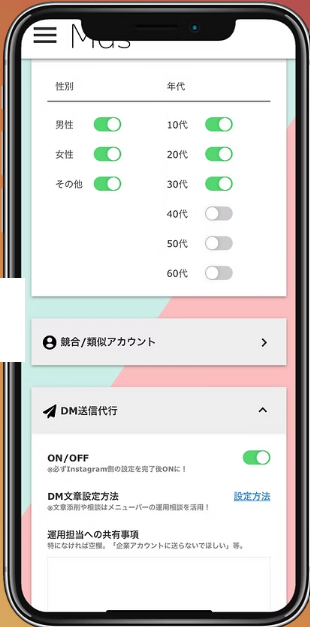 月額18,900円から利用可能で、広告費用を抑えつつ効果的なInstagramマーケティングを実現します。最低利用期間はプランによって異なり、BASIC PLANは1年、TARGET PLANとDESIGN PLANは6ヶ月となっています。各プランには、ターゲット選定や管理画面の提供、DM送信、投稿代行などのサービスが含まれており、ニーズに合わせて選択できます。 :contentReference[oaicite:2]{index=2}