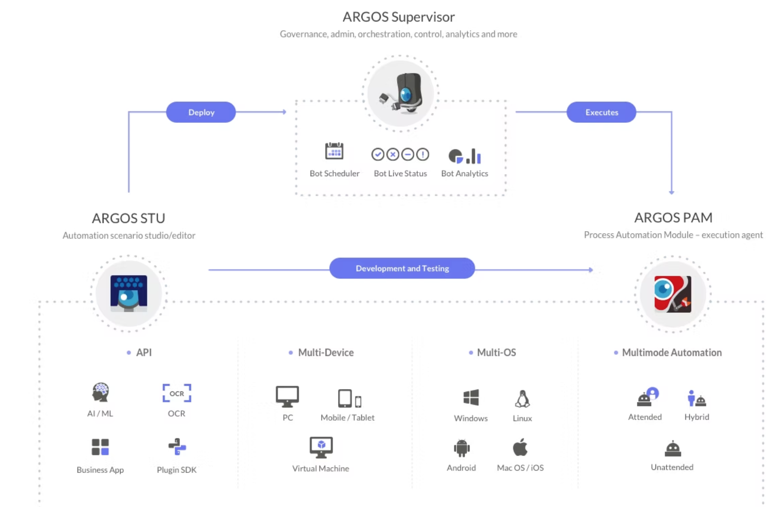ARGOS Low-codeは、ガバナンスとコンプライアンスを重視した安全で柔軟な自動化プラットフォームを提供します。中央管理ツール「ARGOS Supervisor」を通じて、ボットのリアルタイム監視や効率分析、スケジュール管理が可能であり、クラウドおよびオンプレミス環境での導入に対応しています。さらに、Pythonを活用したプラグイン開発キット「ARGOS POT SDK」により、独自のビジネス要件に合わせたカスタマイズが容易に行えます。これらの機能により、企業は安全かつ効率的に業務自動化を推進できます。 :contentReference[oaicite:2]{index=2}