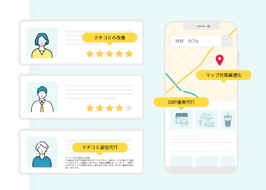 ロカオプは、Googleマップ上での上位表示を目指すMEO対策をはじめ、クチコミ管理・促進、Web予約システム、顧客管理、Webサイト作成、SNS連携など、集客に必要な機能をオールインワンで提供します。これにより、店舗運営者は複数のツールを使い分ける手間を省き、効率的に集客活動を行うことができます。