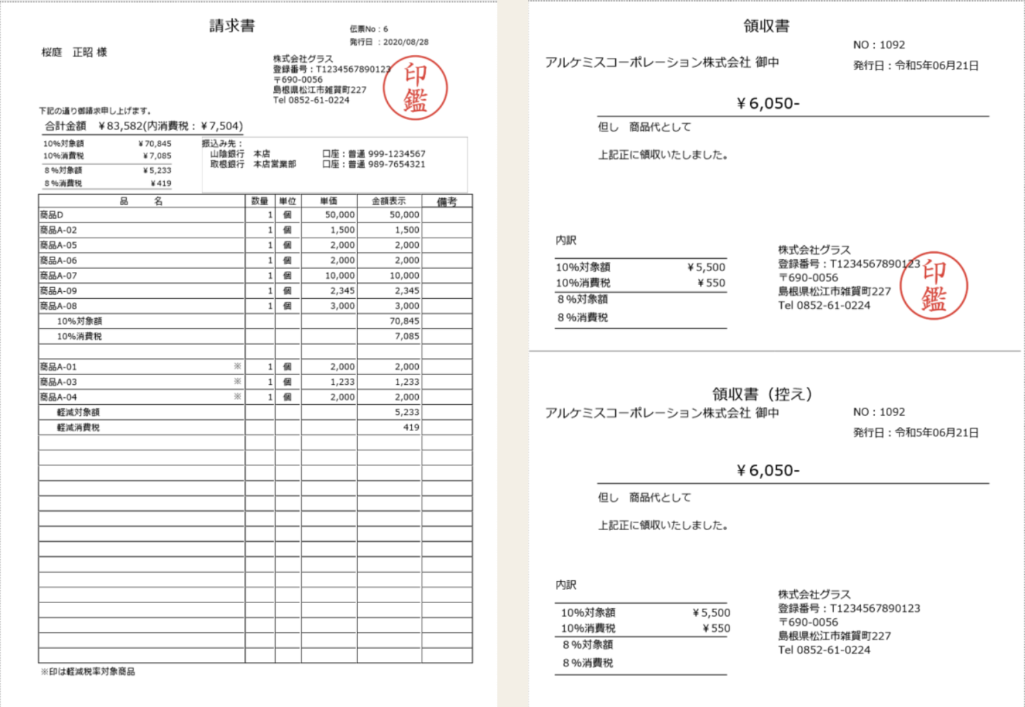 領収太郎は、株式会社グラスが提供するインボイス制度に対応した領収書・請求書発行システムです。iPhone、iPad、Windows、macOSなどのマルチデバイスで利用可能で、オフライン環境でも動作します。試用版、無料版、有償版、サブスクリプション(クラウド)版と、ニーズに合わせたプランが選択できます。領収書はA4版とA5版、請求書は納品日表示や品番表示の選択が可能で、帳票のカスタマイズにも対応しています。印刷だけでなく、PDFでのメール送信も可能で、内税・外税の設定や税率の変更にも柔軟に対応します。