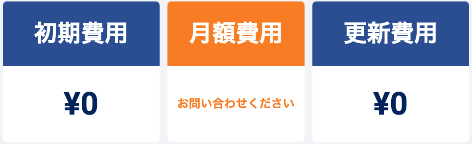 初期・更新費用は0円で、月額費用のみで利用可能です。