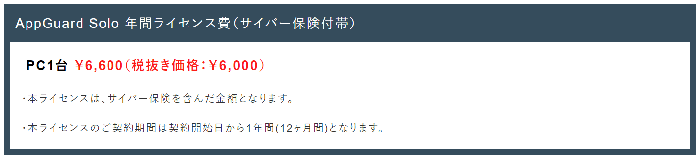 年間ライセンス費:PC1台 ¥6,600(税抜き価格:¥6,000)