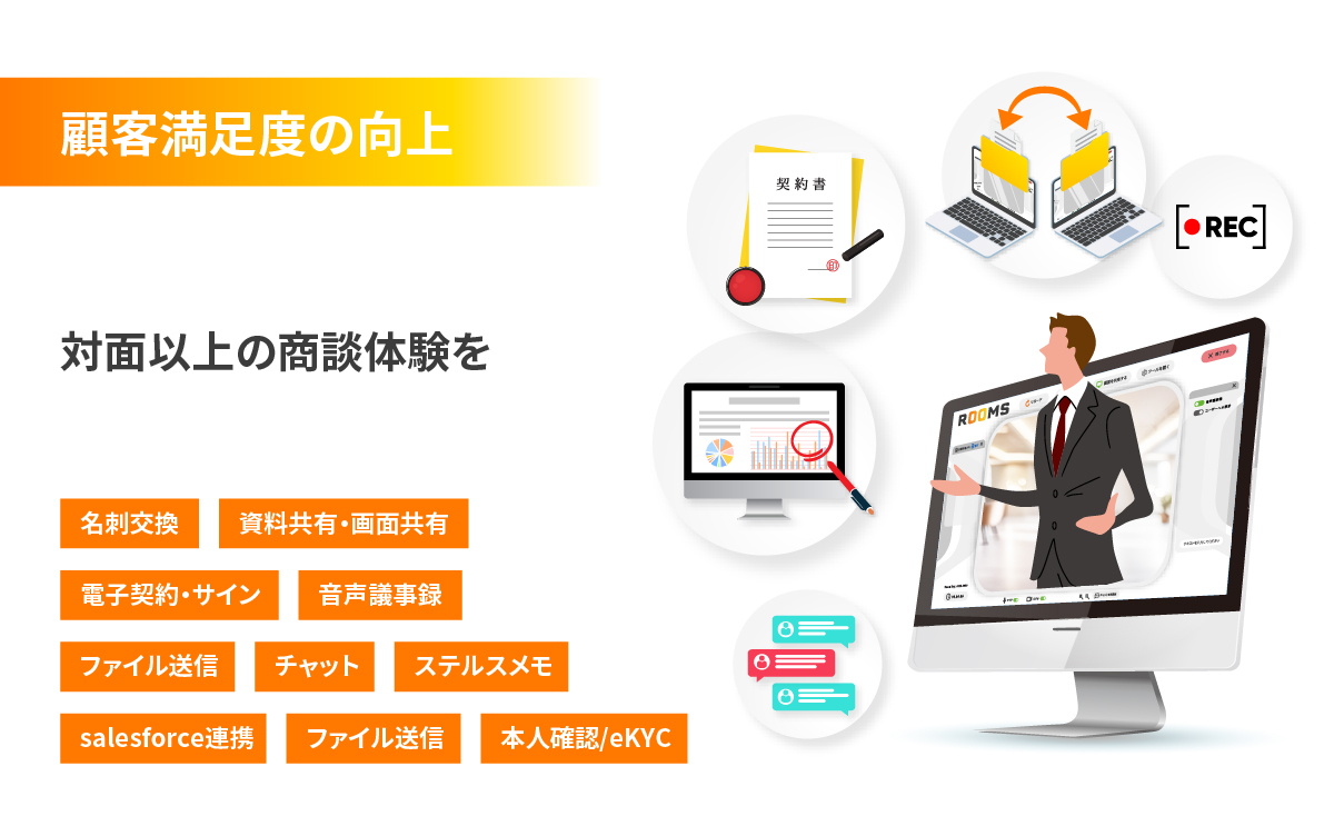 ROOMSは、オンライン接客を活用することで、実店舗に依存しない柔軟な商談体制を実現します。