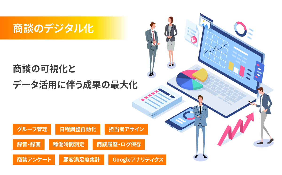 対面接客を大切にしてきた企業にも自然に導入でき、商談予約や資料の画面共有、電子サインなどの機能で、スムーズな対応と高い顧客満足を実現します。