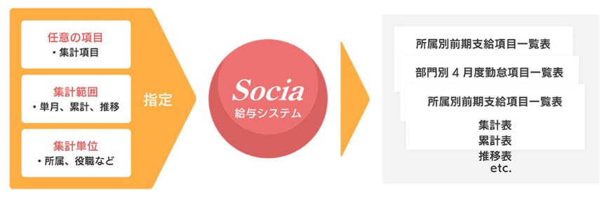 Socia給与システムは、柔軟な計算式設定と自在な集計機能で給与業務をサポートします。年末調整業務もスポットで代行可能。システムとアウトソーシングサービスを組み合わせて業務全体を効率化。