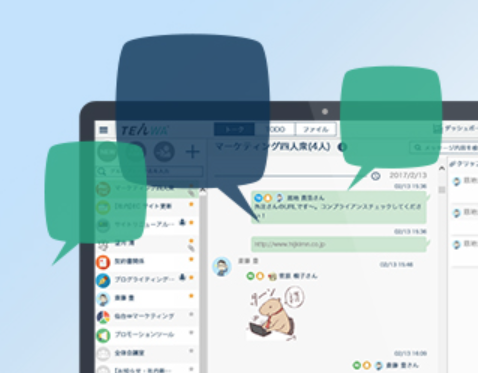 TENWAはビジネスチャットサービスで、コミュニケーションの活性化、モチベーションアップ、メンタルヘルスケアに効果的です。高セキュリティで金融機関でも安心。エモーションスタンプや外部招待機能、メンタルヘルスに活かす統計機能などがあります。