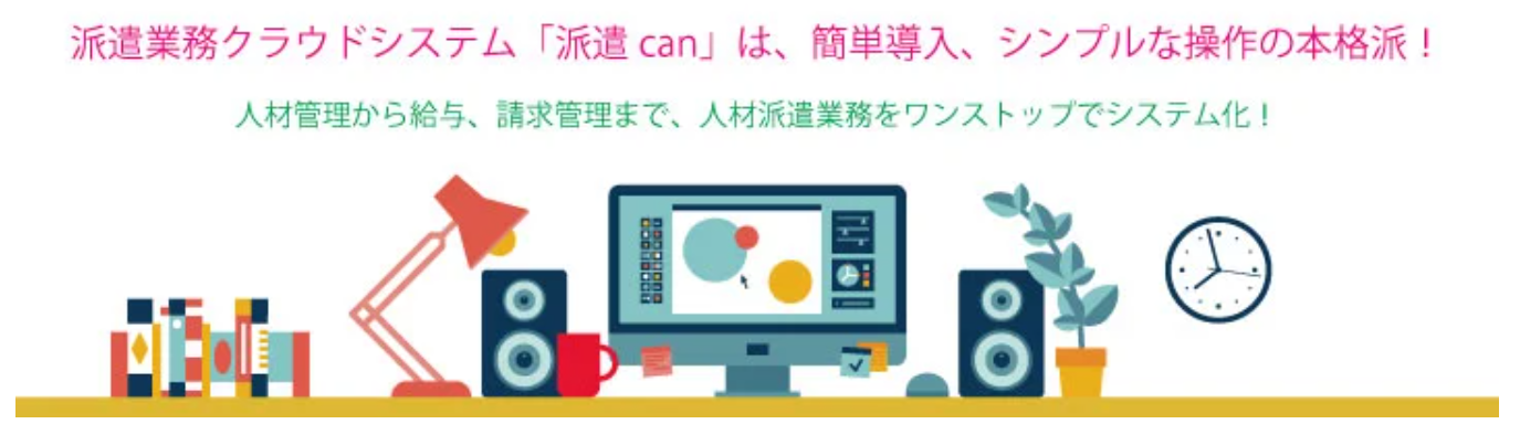 派遣canは、求人から契約、勤怠・給与・請求管理まで、派遣業務のすべてをクラウド上で一元管理できるシステムです。マイページ機能により、スタッフと派遣先とのやり取りもオンラインで完結。必要な機能だけを選択導入できるため、コストを抑えつつ自社に最適な運用体制を構築できます。