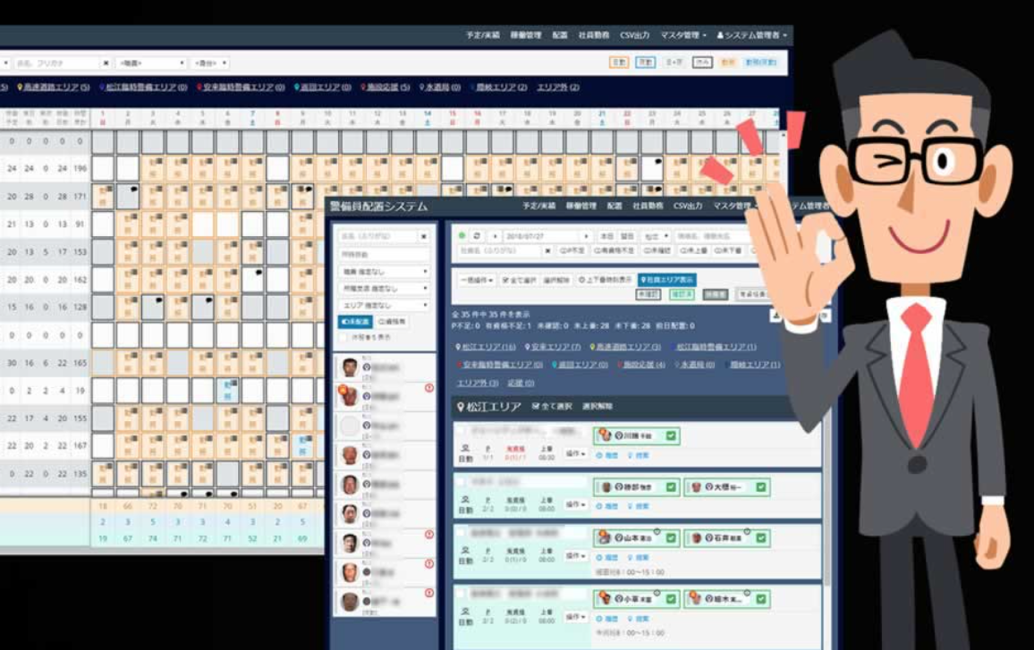 警備員の出退勤記録や日報提出機能、隊員ごとのスケジュール管理まで対応しており、事務所側の負担を大幅に軽減します。また、過去データの蓄積・検索機能や、マスタ登録で再配置も簡単に。管理者はもちろん、現場隊員にも優しい設計です。
