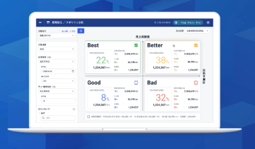 FULL KAITENは、小売・EC事業者向けに、売上・粗利・消化率を最大化するための在庫最適化支援を行うクラウドSaaSです。AIと統計による予測機能を搭載し、売価変更タイミング・商品組み合わせ提案・適正在庫移動などを実現。不要な倉庫出荷の抑制、売れる商品の特定、店間移動の最適化など、売上と粗利の向上を同時に支援します。専門知識不要で直感的に操作可能なUIも特徴です。