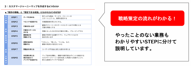 単なる開発ではなく、顧客体験を起点としたUX設計・マーケティング設計に重きを置き、目標到達に直結するWEB戦略を立案。課題抽出→アイデア発想→設計→プロトタイピング→開発→リリース→改善のループを高速で実現し、顧客との長期的なパートナー関係を構築します。秘伝書(ナレッジ集)により誰でも戦略立案を実行できる仕組みも提供し、クライアント社内の学習促進と意思決定スピード向上を支援。