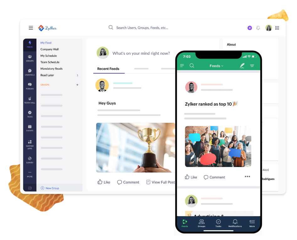 Zoho Connectは、社内コミュニケーションとコラボレーションを強化する一元型ソリューションです。従業員エンゲージメントを高める豊富な機能、ダッシュボード、ゲーミフィケーション、カスタムアプリケーションなどがあります。