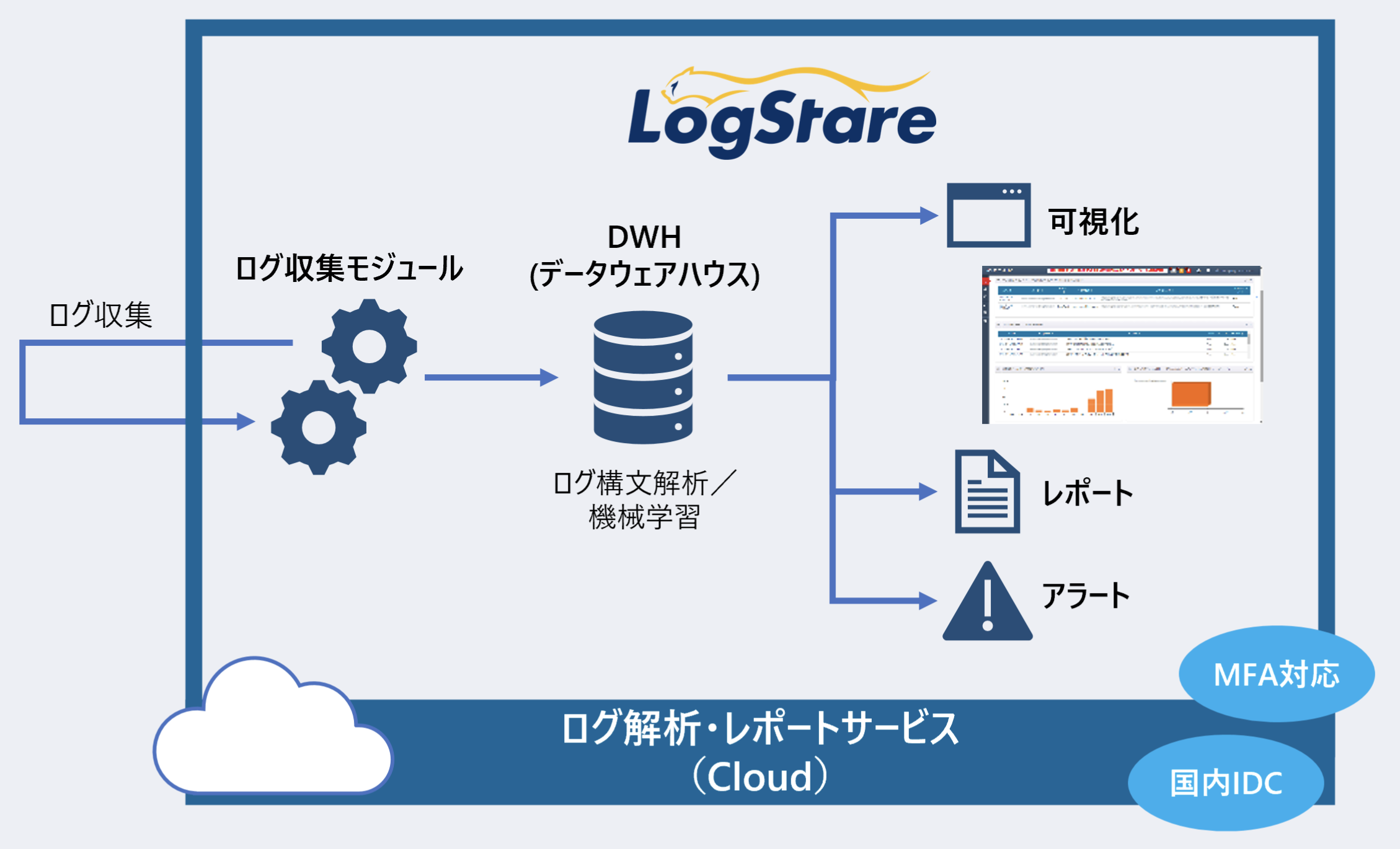 クラウド型でインストール不要。一般的なWebブラウザ環境で利用可能。ログは国内データセンターに保管。