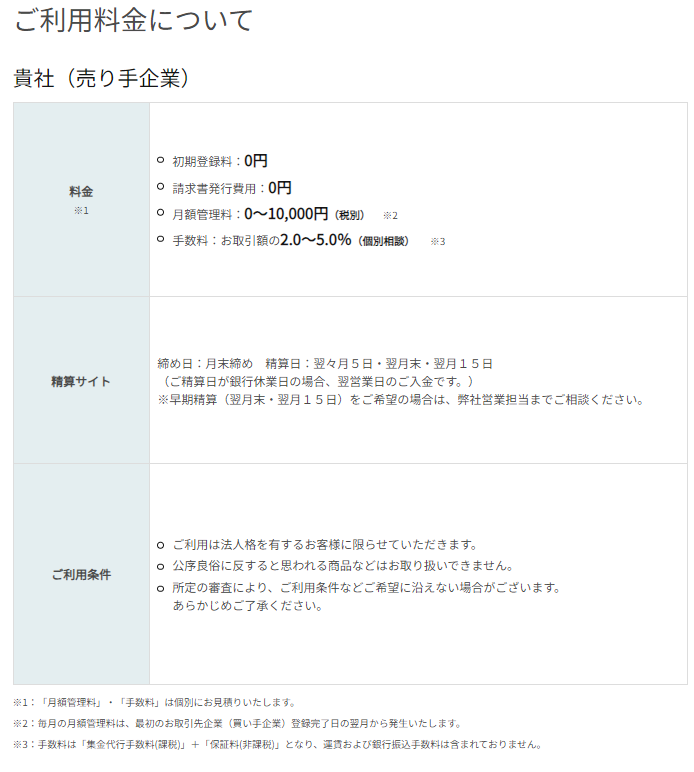 手数料は2.0%から5.0%、月額管理費用は最大1万円(詳細はサイト参照)