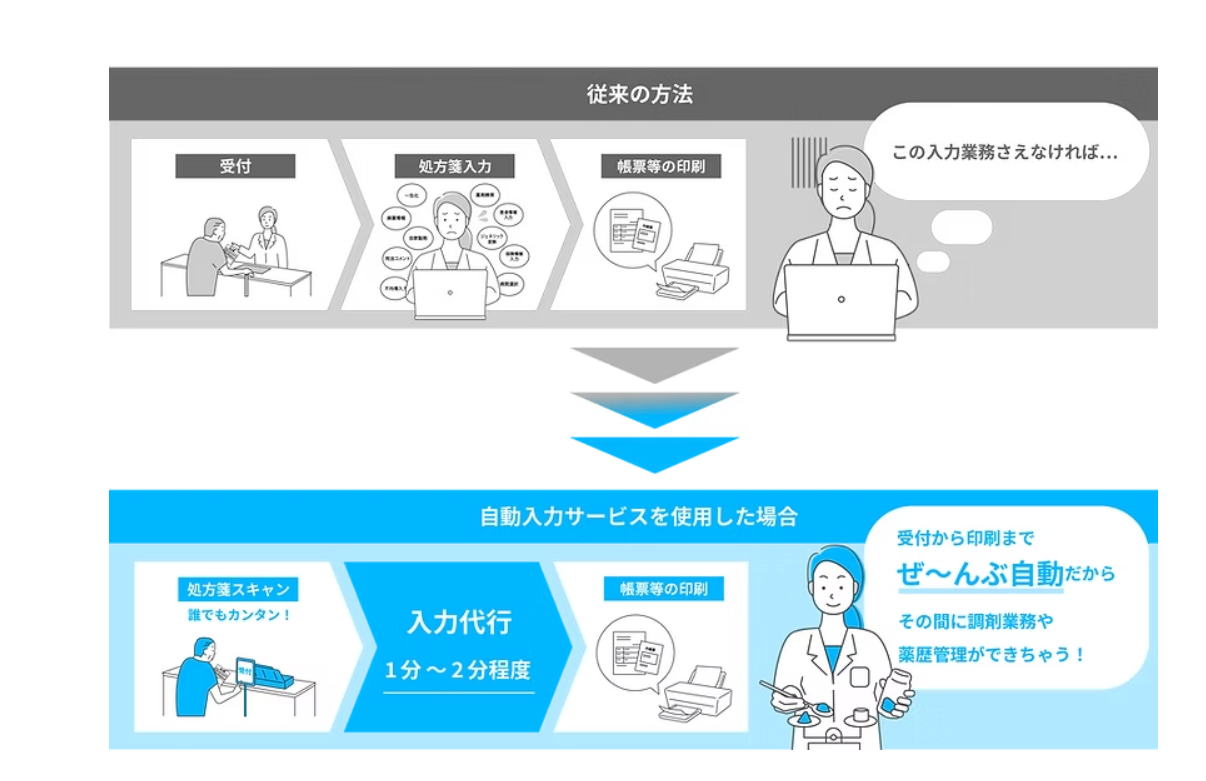 プレカルレセコンは、調剤薬局向けに設計されたクラウド型のレセプトコンピュータで、基本利用料0円から導入できるコストパフォーマンスに優れた業務支援サービスです。直感的な画面で処方箋入力や集計業務、各種マスタ管理までを一元化。さらに、処方箋自動入力サービスとの連携により、受付〜レセプト作成までの作業をほぼ全自動化。薬局スタッフの業務負担軽減とミス防止を実現し、次世代薬局運営の基盤となるサービスです。