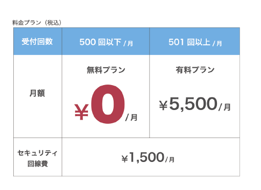 基本利用料無料(セキュリティ費のみ発生)。処方箋自動入力などオプションは別途見積。導入前の無料体験版あり。