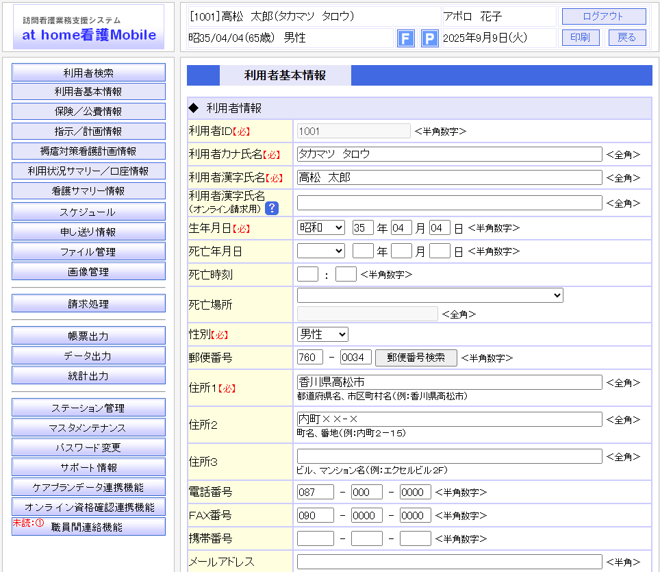 at home看護Mobileは、訪問看護ステーション向けに設計されたASP型(クラウド型)業務支援システムです。インストール不要で、インターネット接続さえあればPCやスマートフォン、タブレットからすぐに利用可能。訪問記録、実績管理、請求業務までを一元化し、現場の負担を軽減します。
