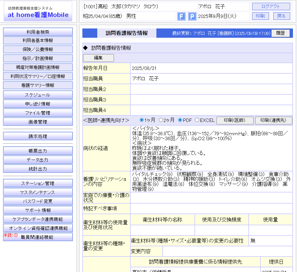 at home看護Mobileは、記録から請求までをクラウドで一元管理できる訪問看護向け業務支援システムです。