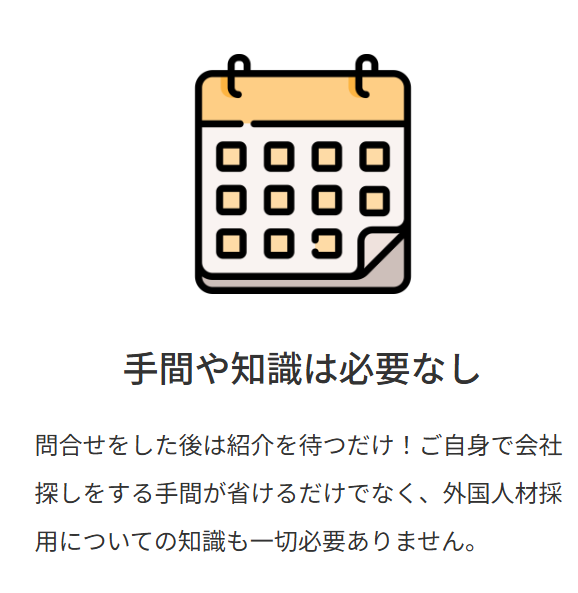 外国人採用の窓口は、外国人材を採用したい企業と、それを紹介できる事業者(人材紹介会社・団体)とをマッチングさせるWebベースのビジネスマッチングサービスです。運営側が案件ごとに企業の発注意欲・採用要件・受け入れ可否をヒアリング・審査し、条件に合致する紹介会社1〜3社へ限定的に紹介。無駄な競争やコストを排除しながら、高確度な営業機会を提供。Web集客の知識がない事業者でも、営業せずに顧客を獲得できます。
