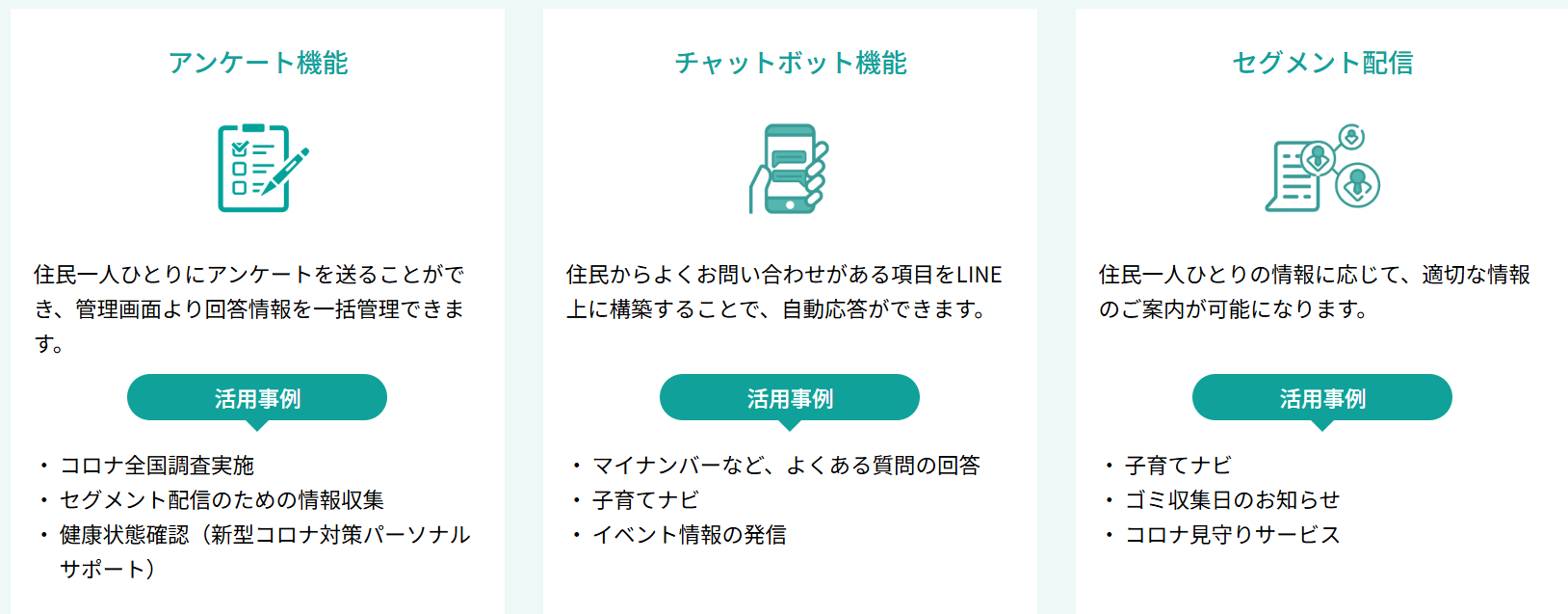 アンケート機能やチャットボット、リッチメニュー、通報機能などを組み合わせることで、Linyは行政の問い合わせ対応や情報提供を効率化。たとえば、ゴミ収集日のお知らせや子育てナビ、防災対応などを個別に配信でき、情報が埋もれない構成も魅力です。セキュリティも充実しており、LINE公式の技術パートナーとしても認定されているため、信頼性も高いサービスとなっています。