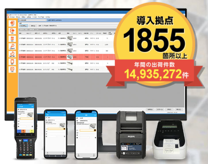 クラウド型サービス。Windows PC・スマートフォン(iOS/Android)対応。ハンディターミナルやモバイルプリンターとも連携可能。