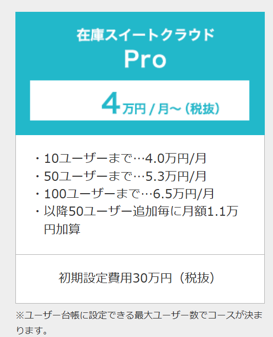 初期設定費用:300,000円~、月額費用:10ユーザーまで40,000円~(税別)。オプションにより追加費用あり。