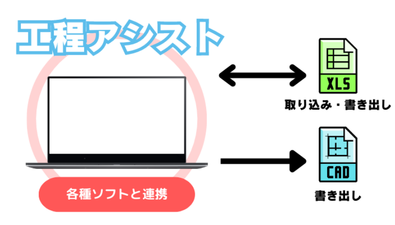 「工程アシスト」は建築現場の工程管理を支援するソフトウェアで、設計・企画段階から施工まで一貫した工程表の作成が可能です。自動で概算・実施・月間・安全工程表の作成ができ、Excel・CADとの連携にも対応。歩掛りや出来高管理、カレンダー設定など現場に必要な機能が豊富に搭載されており、作業効率を大幅に向上させます。