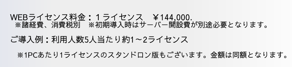 Windows PC(Windows 11/10)、推奨メモリ1GB以上、HDD100GB以上(空き20GB以上)、解像度800×600以上、256色以上、ExcelやCADとの連携対応