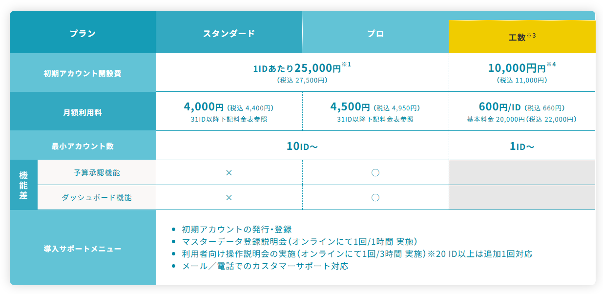 月額:1ID 4,000円(税込4,400円)/初期費用:1ID 25,000円〜(税込27,500円)