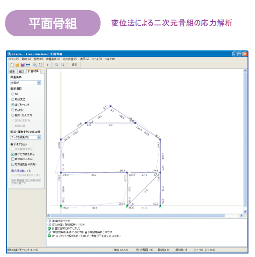 フリーストラクチャー7.1は、構造システムが提供する汎用応力解析ソフトウェアで、2D・3D骨組、建築構造、平面板に対応した4つの解析プログラムを搭載。部材や節点を画面上で直接操作できる高い視認性と操作性が特長。剛床仮定や壁要素などの建築向け機能、Sチャート8との連携による断面計算、XMLによるデータ連携、自動メッシュ分割など、多彩な機能を備え、構造設計業務の効率化と可視化を支援します。iOS・Android版も提供されており、現場や移動中の確認にも対応。