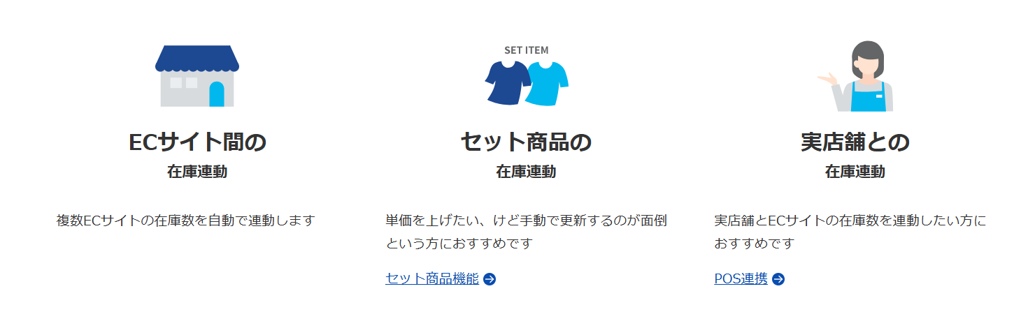 zaiko Robotは複数のネットショップや実店舗の在庫数を自動で連携し、売り越しや在庫切れによる販売ロスを防ぎます。セット商品やSKUバリエーション対応も万全で、在庫反映は最短1分。どのモールで売れても在庫数を即座に反映できるため、セール時や集中注文時も安心。最大15ショップまで連携可能で、ショップ拡大にも柔軟に対応します。