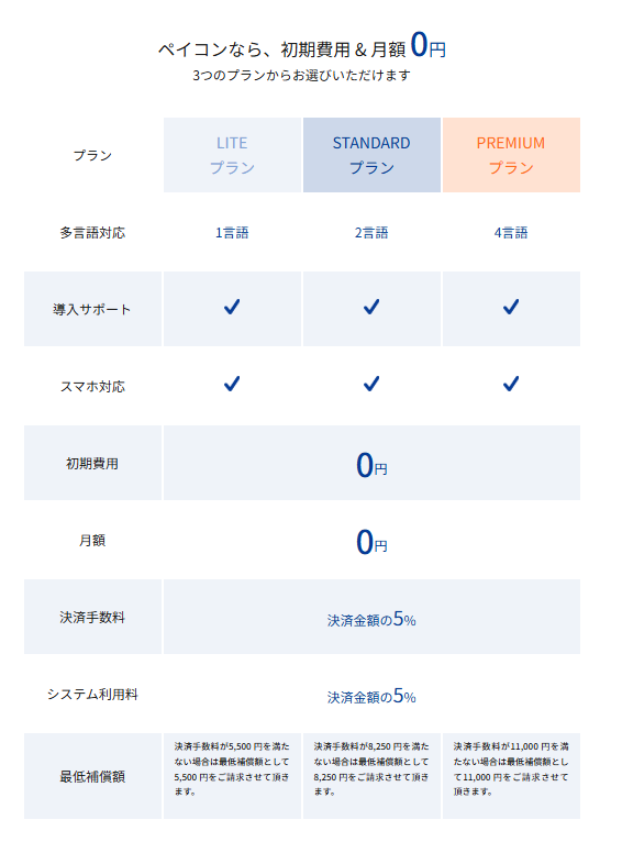 初期費用無料/月額料金無料/決済時に手数料が発生(詳細は要問い合わせ)