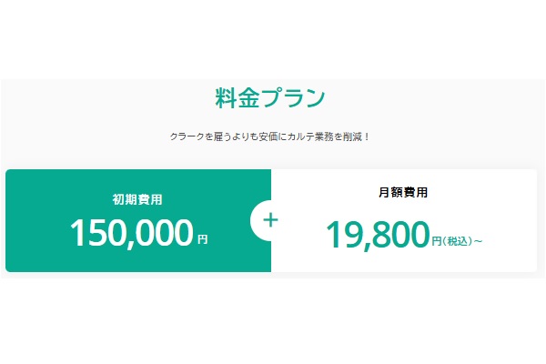 クラウド型(Webアプリ)。PC、iPad、スマートフォン対応。オンプレ電子カルテとも連携可能。