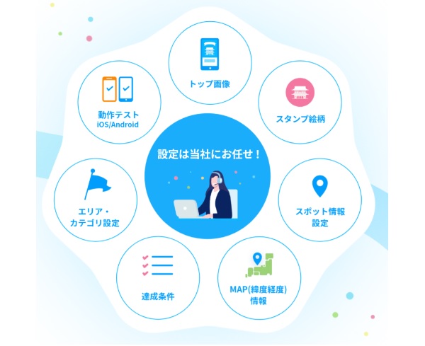 全国の自治体・観光協会・商業施設での導入実績多数。スポット設定、スタンプデザイン、景品管理、事後集計・分析レポートなど、構築から運用後まで一貫支援。ISMS・Pマーク取得済のセキュリティ体制により個人情報も安全に管理。誰でも安心して利用できるため、初めてのスタンプラリー開催でも成功率が高く、地域活性化や来店促進に大きく貢献します。