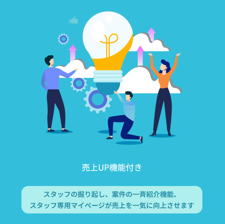jobsは中小の人材派遣・請負・紹介会社向けに設計されたクラウド型基幹システムです。案件・スタッフ管理、勤怠、契約、請求、給与などの業務を一元管理でき、スタッフマイページやLINE連携など現場に適した機能も充実。月額3.3万円の定額制で、アカウント数や機能数に制限は一切なし。初心者でも簡単に扱えるUIと、導入後も専任スタッフによる無料サポートが受けられ、業務負担を大きく軽減。部分的な導入や運用代行にも対応し、業務やスケジュールに応じた柔軟な運用が可能です。
