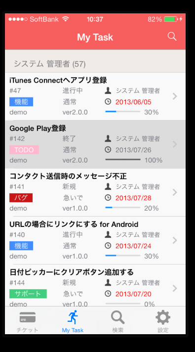 スマートフォンアプリ(iOS/Android)、Redmineと連携、AppStore・Google Playから無料ダウンロード可能