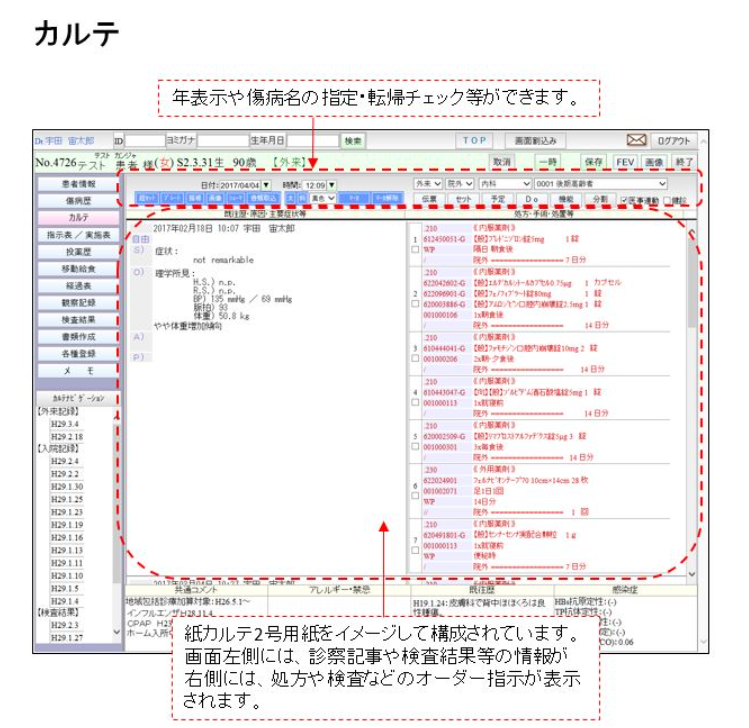 直感的な操作性を重視した画面設計により、医師や看護師がストレスなく利用可能。患者情報や診療履歴へのアクセスもスムーズで、ミスを防止しながら作業効率を向上させます。カスタマイズにも柔軟に対応でき、施設ごとの運用スタイルにぴったりとフィットします。