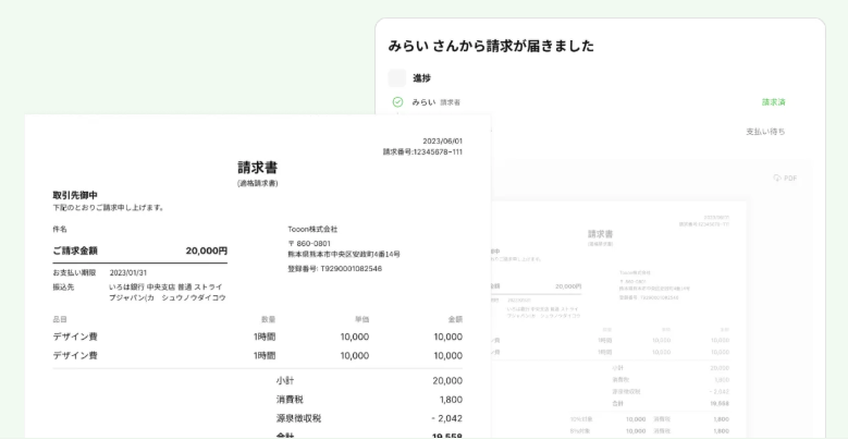 エスクロー方式のあんしん決済で未払いリスクを防止。支払待ち・入金済のステータスを可視化し、クライアントとの決済・請求管理もブラウザ上で完結。領収書自動発行機能も搭載しています