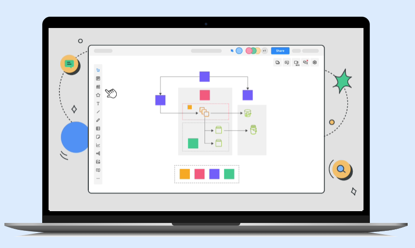 Cacooは、複数人が同時に編集できるオンライン作図ツール。図を描きながらリアルタイムでフィードバックを共有でき、チームの意思疎通をスムーズにします。ブラウザベースでインストール不要なため、どこからでも利用可能。チャットやコメント機能も搭載しており、意見交換をしながらの共同作業に最適です。