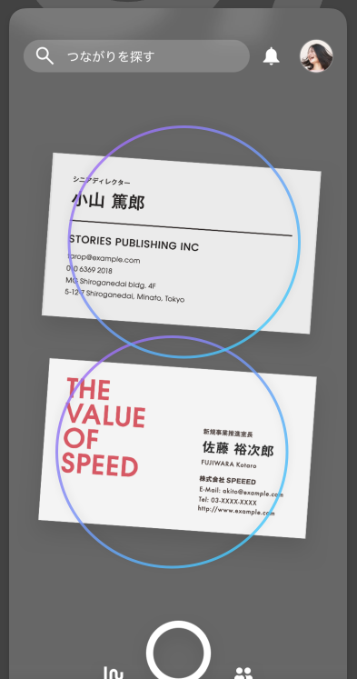 Wantedly Peopleは、最大10枚の名刺を一度にスキャンできる高速OCR機能を搭載。AIが文字認識し、名前・会社・連絡先などを自動抽出してデジタル名刺帳に変換。名刺情報はクラウドに安全に保管され、必要なときにすぐに検索・閲覧が可能です。
