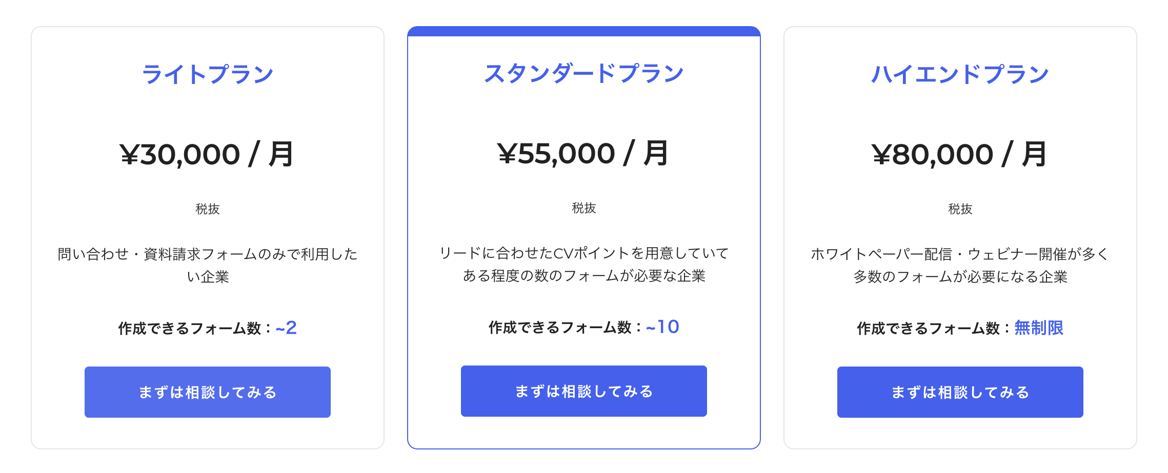 ∟作成できるフォーム数:〜10個