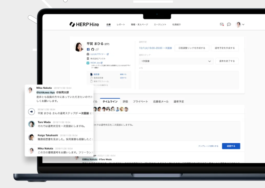 HERP Hireは、採用プロセスを効率化するための多機能な採用管理システムです。スケジュール管理、面接調整、候補者評価など、一元的に管理できます。