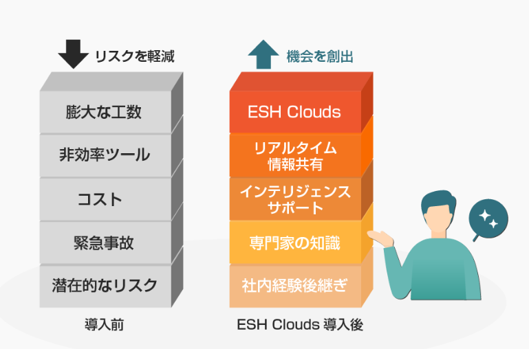ESH Clouds‑Chemicalsは、ISO Annex SLフレームワーク準拠のクラウド型プラットフォームで、SDSデータベース管理、法令順守、リスクアセスメントを統合提供。AI‑OCRでPDFやExcelからのデータ化を高速化、法改正情報をAIが自動通知し、SDS登録工数を最大70%削減。GIS対応ラベルの多言語出力、逆引き法規検索、複数の評価手法によるリスク推計にも対応し、化学物質管理DXを推進します。導入実績はアジアで200社以上。