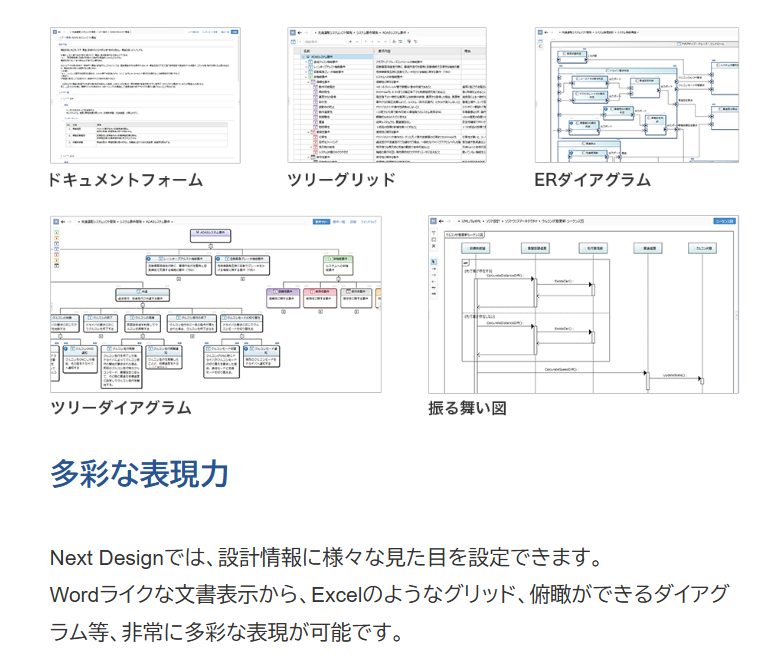 Next Designは、プロセス現場に最適化された“メタモデル”と“ビュー定義”を用いて、プログラミング不要で専用設計ツールを作れる次世代システム・ソフトウェア設計ツールです。多様な表現形式(Word風・Excel風・図解など)や、自動トレーサビリティ記録、プロダクトライン設計の再利用、Gitやアクセス分散開発、拡張機能(エクステンション)、文書自動出力などに対応し、大規模チーム開発にも強く、設計のDXを促進します。2025年3月にはプロファイル再利用やタブ型多重編集などを搭載したV4がリリースされ、より柔軟で快適な設計環境を提供しています
