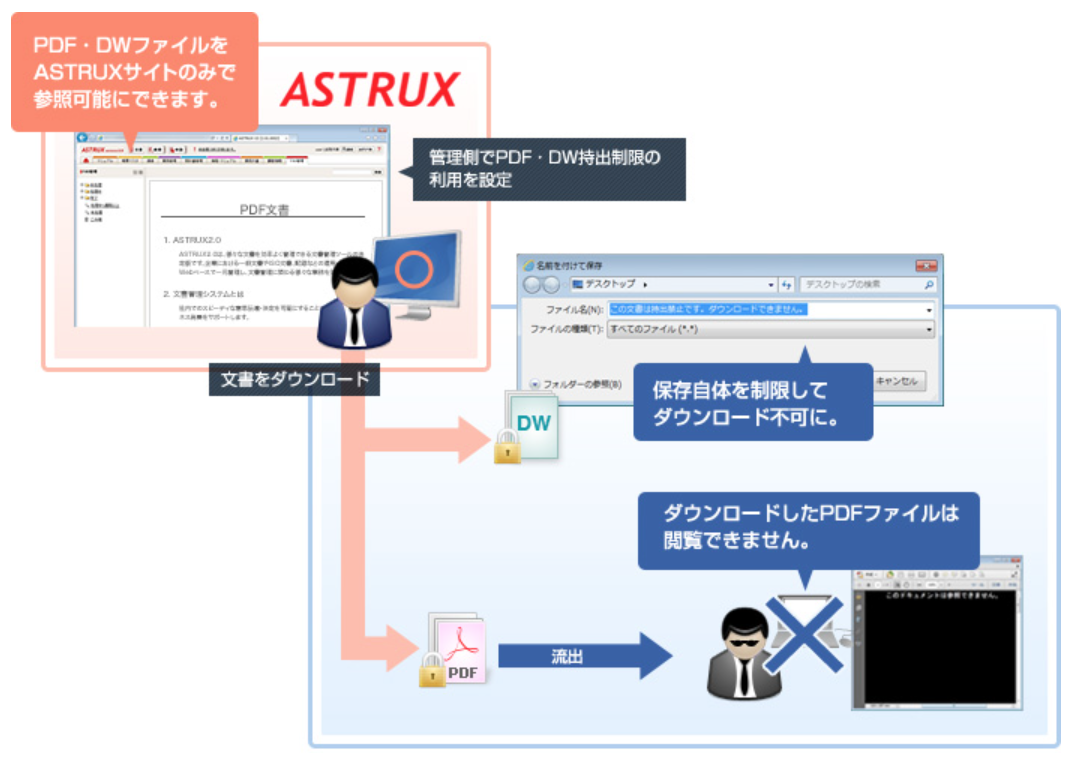 ASTRUX2.0は、企業の様々な文書を一元管理することで、文書管理に関わる業務を効率化します。多彩な文書分類方法、詳細なアクセス権限、各種デバイスからの参照可能性など、多機能を備えています。
