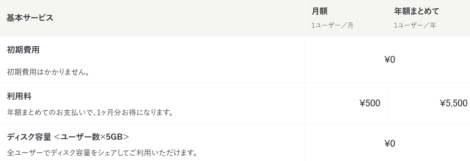 クラウド版:初期費用0円、月額1ユーザーあたり約\500(年間まとめ払いで1ヵ月分お得、年額約\5,500)パッケージ版:50ユーザーライセンスで約\600,000から