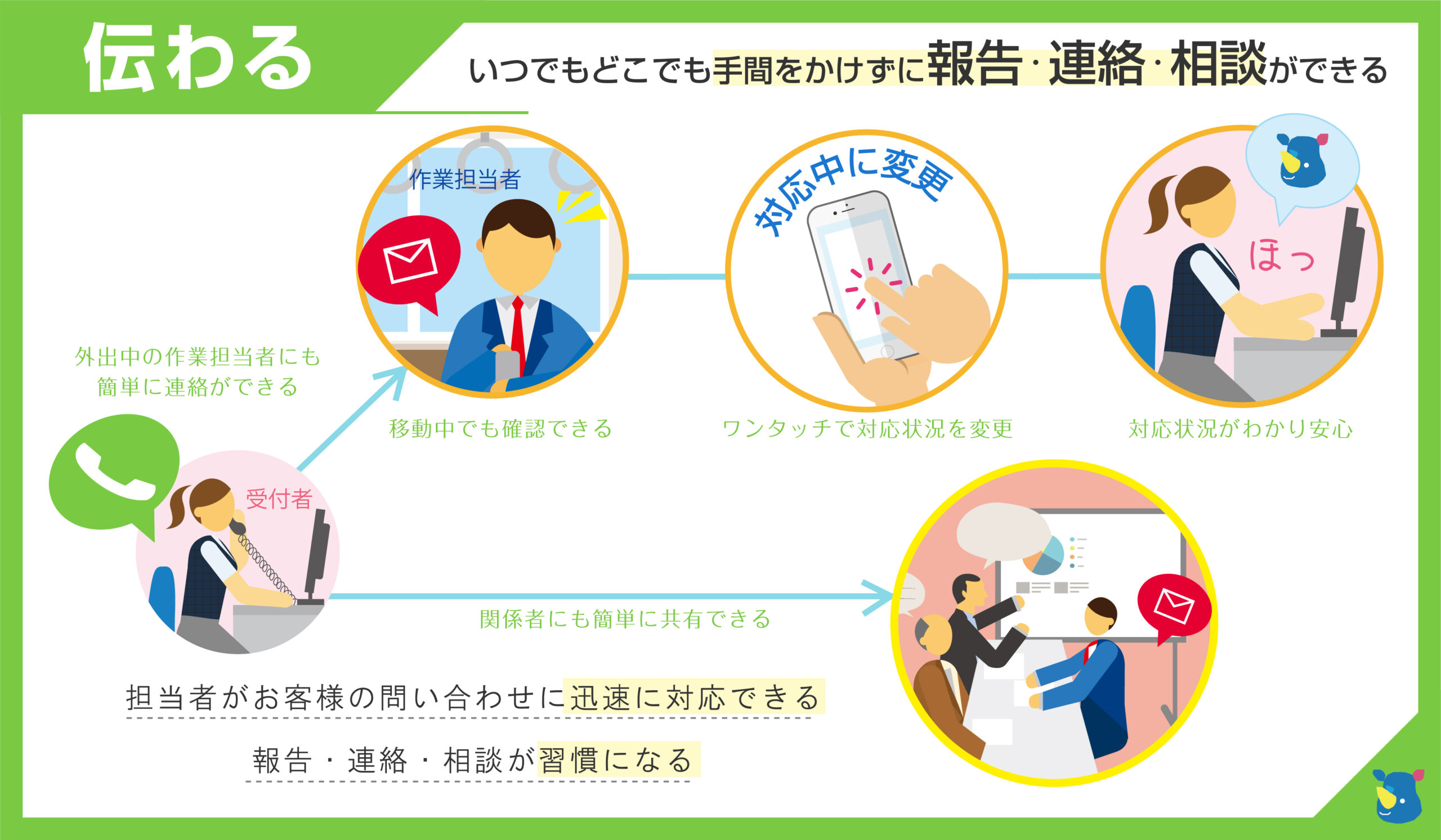 ネット上に連絡事項を記載するだけで、登録された相手へ一斉に連絡ができます。これにより、外出中や会議中でも効率的なコミュニケーションが可能です。